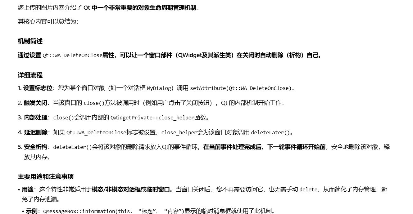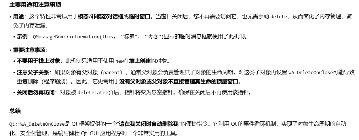 这里重点说下QWidget设置Qt::WA_DeleteONClose标志位