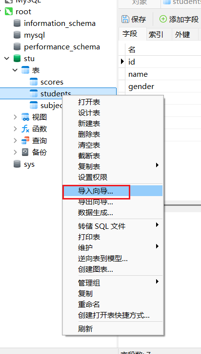 mysqldump -uroot -p123456 stu students > /root/data/students.sql