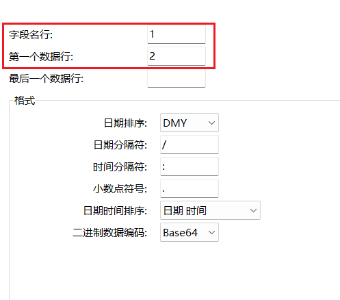 第一个数据行:从此行开始读取数据,若没有说明性文字,序列从1开始