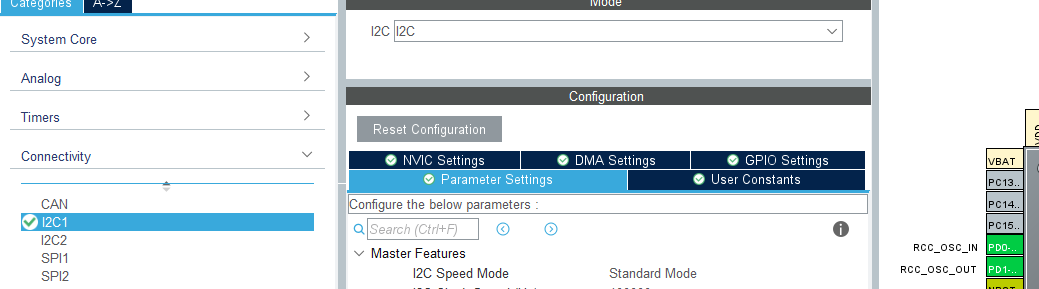 因为需要使用OLED屏幕显示测试距离所以需要打开I2C1