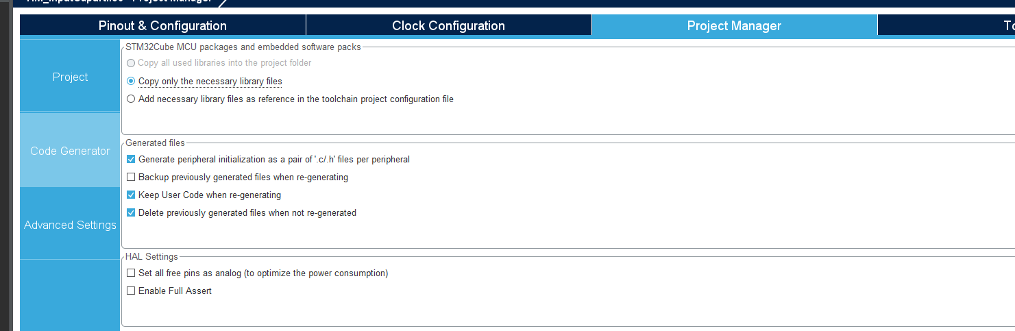 并且勾选为每个外设单独生成单独的.c/.h文件