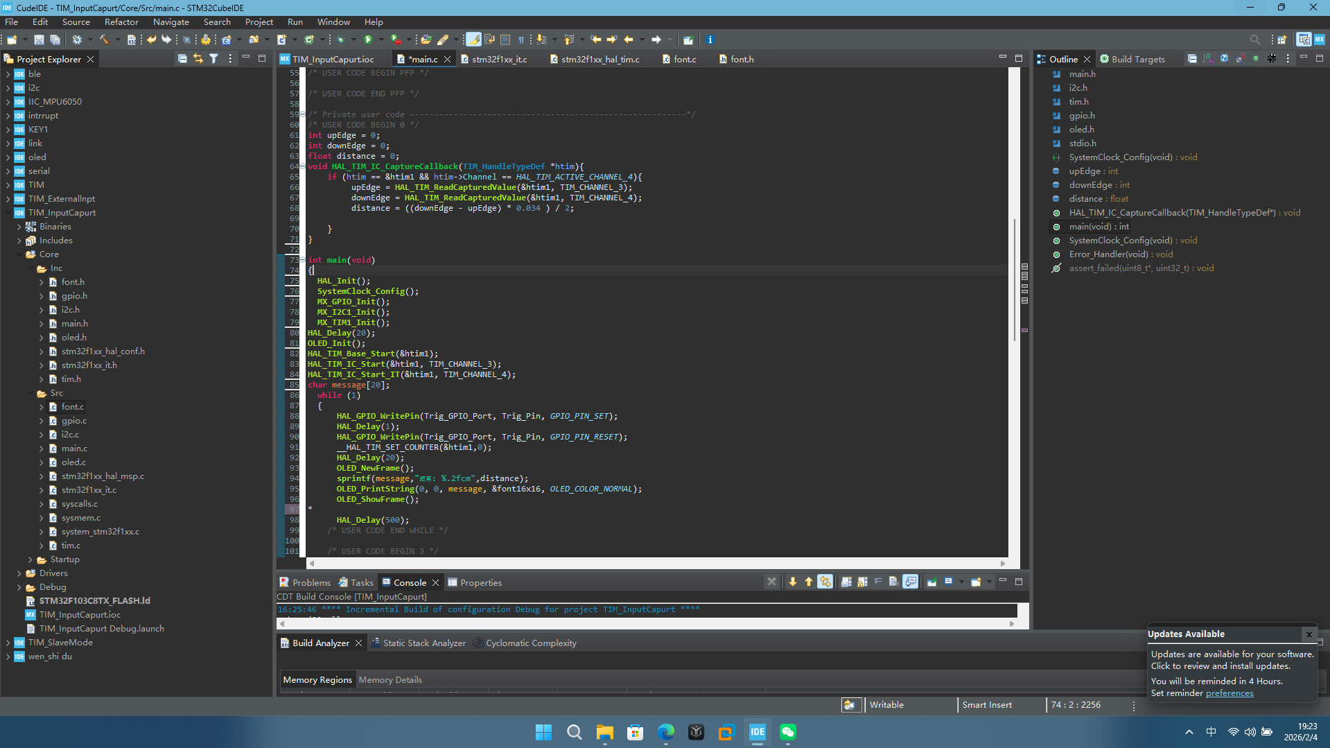 最后在OLED显示频中将输入捕获回调函数计算的距离显示在OLED屏幕中。