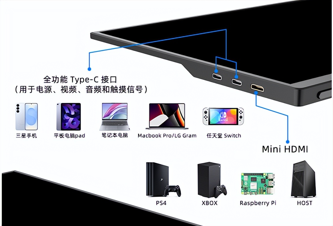 全功能Type-C接口的普及正在改变便携显示器的连接方式。2025年,支持USB4标准的Type-C接口将成为高端产品的标配,提供高达40Gbps的数据传输带宽,同时整合视频信号、数据传输和100W反向供电功能。这意味着用户只需一根线缆即可连接笔记本、游戏主机或手机,实现视频传输和设备充电的双重功能。