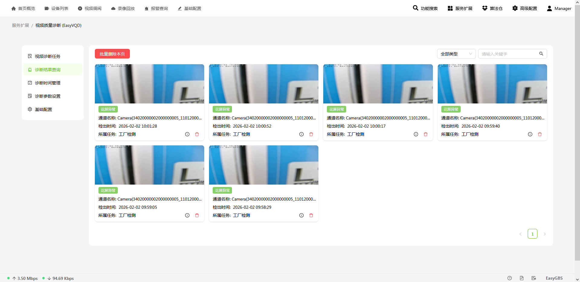 EasyGBS的视频质量诊断模块(EasyVQD)深度融合计算机视觉与深度学习技术,构建了覆盖11类核心异常的检测体系,实现从"被动告警"到"主动预防"的跨越式升级。