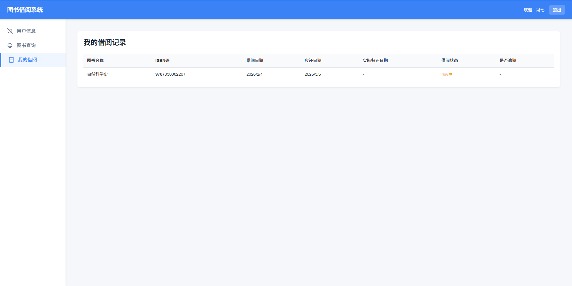**状态管理**:自动计算借阅状态(借阅中、已归还、已逾期)