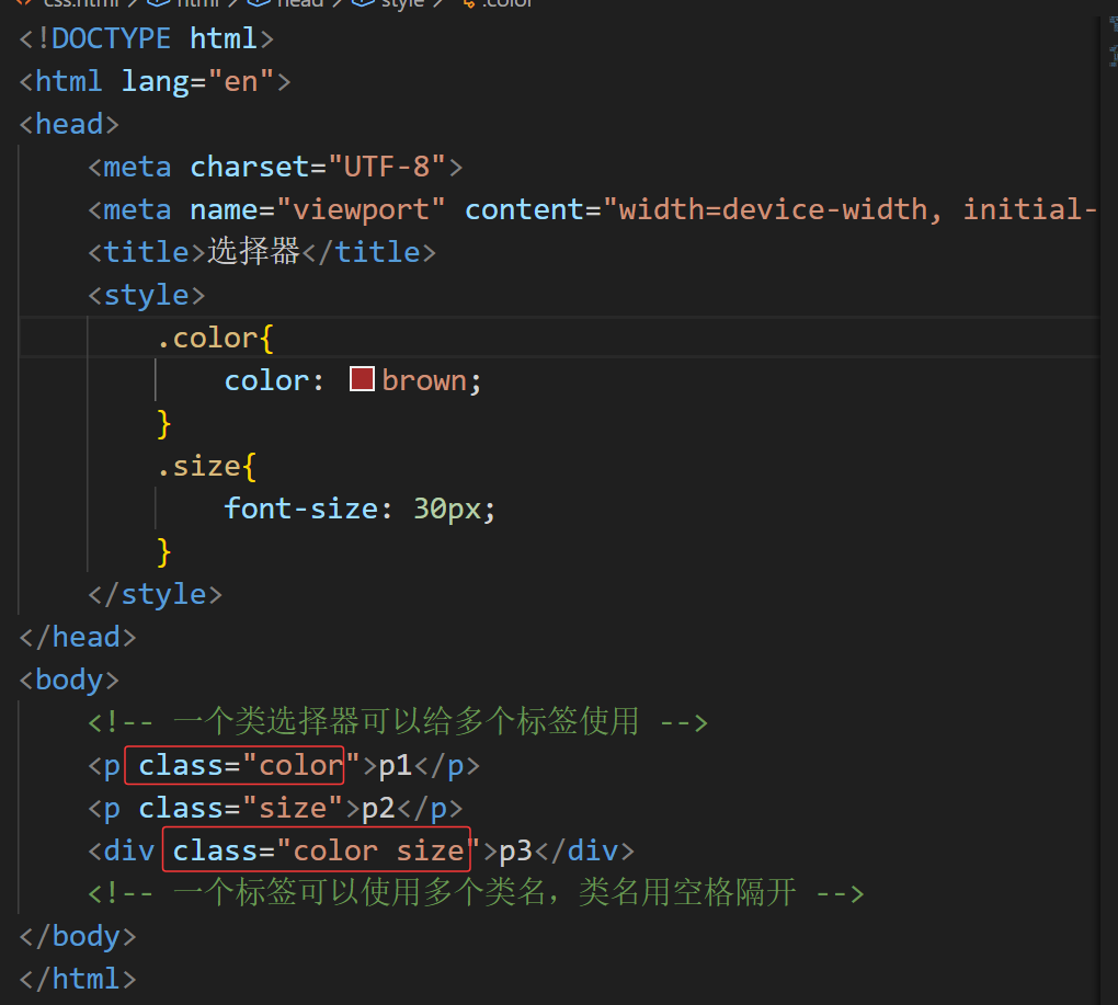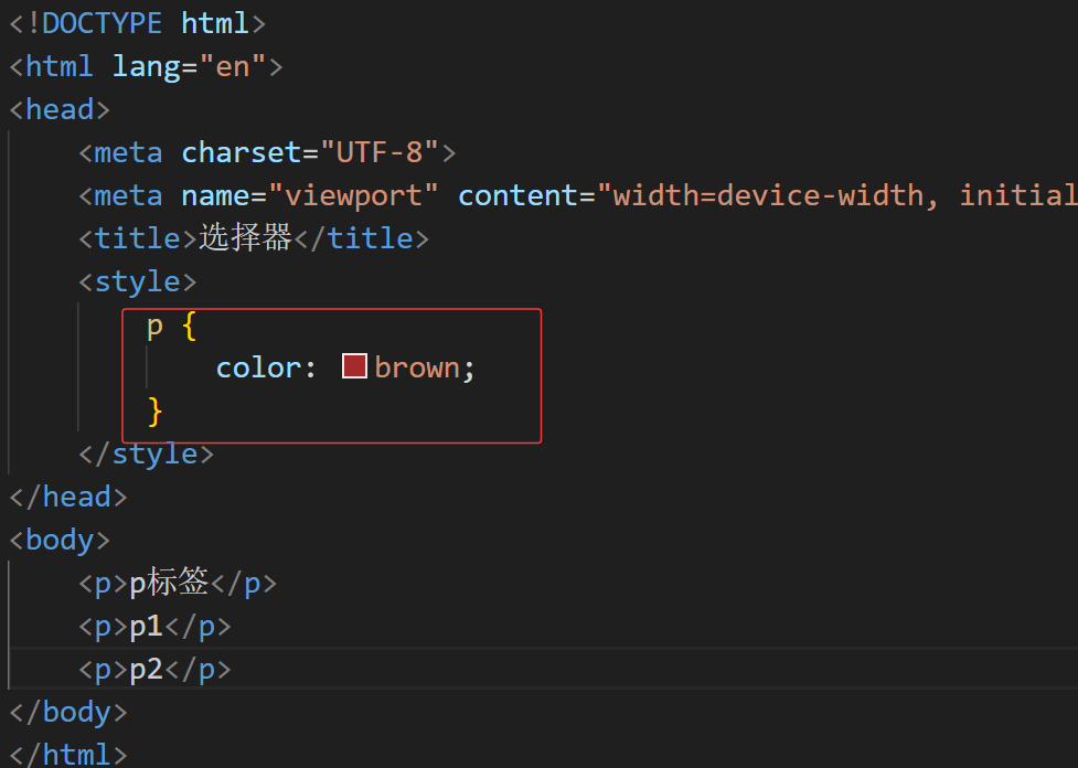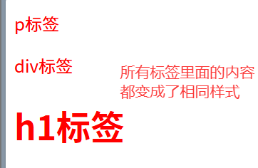 使用标签名作为选择器,选择所有同名标签设置相同样式,无法差异化同名标签