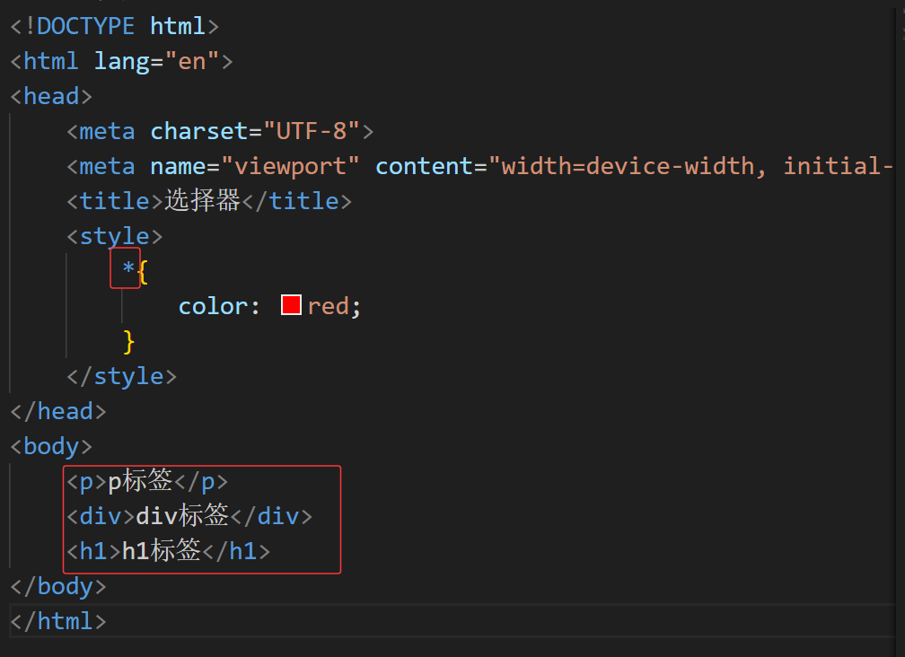通配符选择器:*,不需要调用,浏览器自动查找页面所有标签,设置相同样式