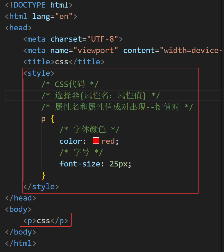 书写位置:title 标签下方添加style双标签,style 标签里面书写CSS代码。