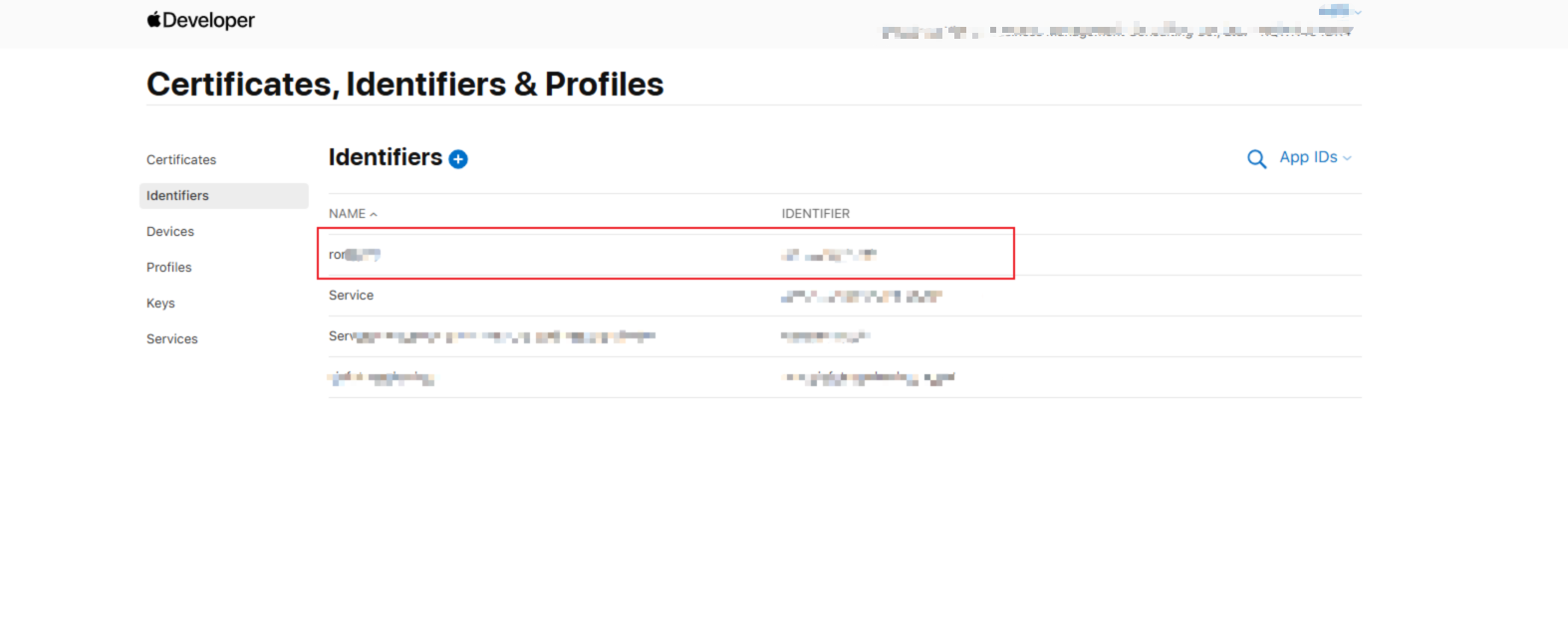 二、在identifiers项找到之前添加的需要修改相关权限的应用id点进去!