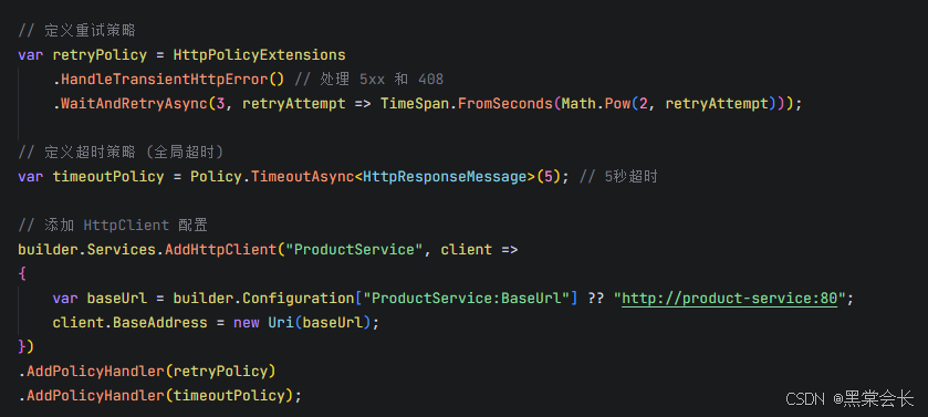 Program.cs,配置HttpClient的重试/超时策略: