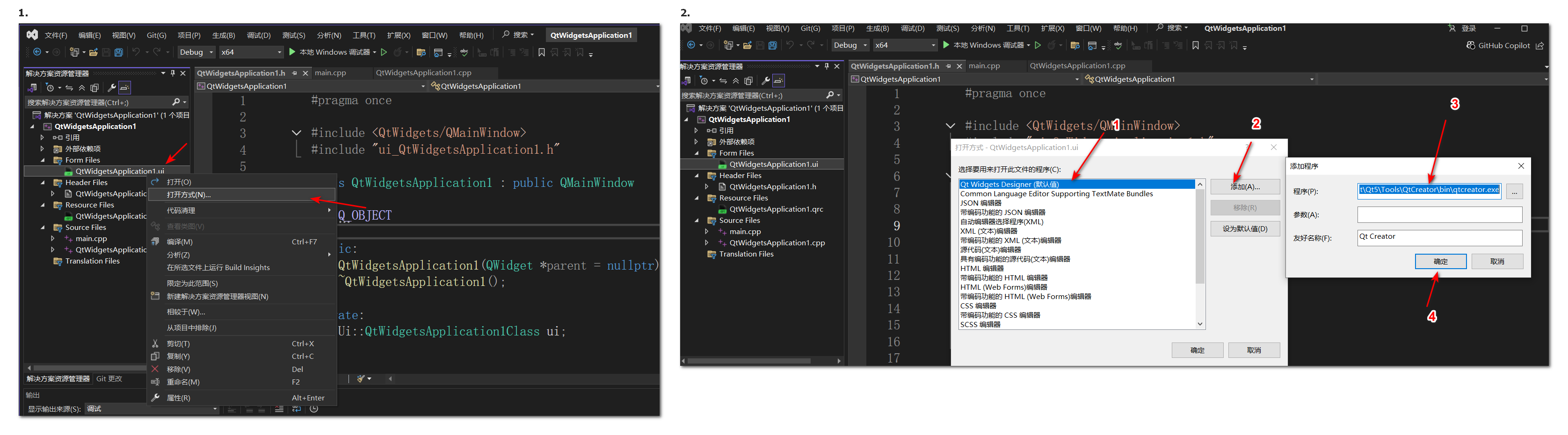 vs项目点击项目中xxx.ui文件,不能直接打开。