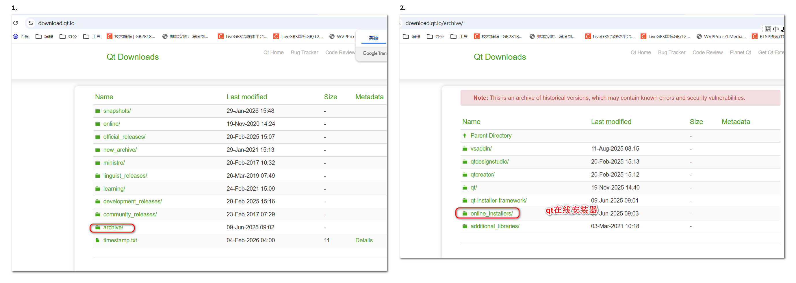 浏览器输入archive进入index of标记的qt官网
