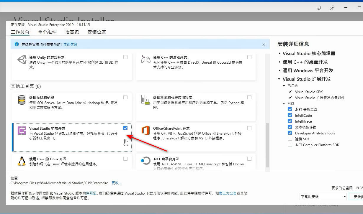 记住勾选如上配置以支持vs2019下qt开发,其他步骤省略