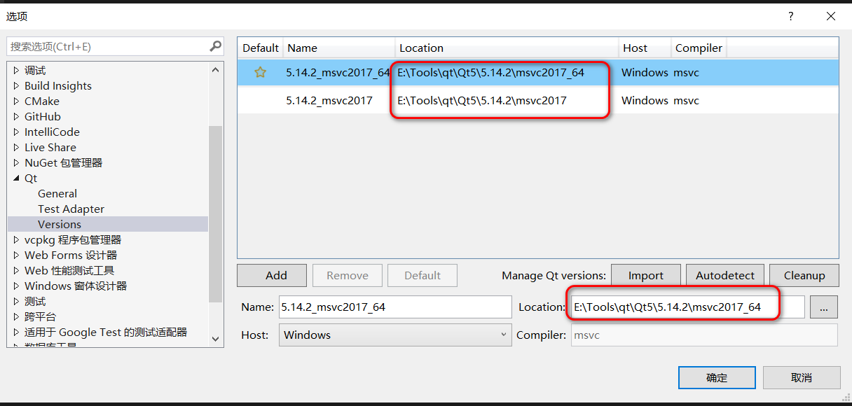 mscv编译器为VS2019配置一节中手动add添加的qt环境对应msvc编译器