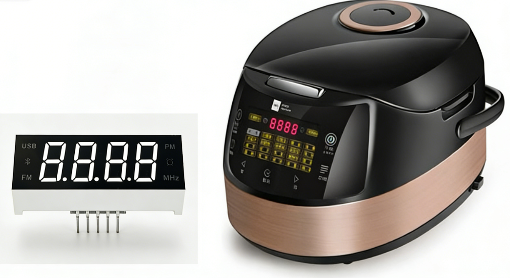 对于电热水壶、微波炉等厨房电器,优先考虑尺寸小、低功耗、长时间耐用的数码管,如0.36英寸规格,具有高亮度和良好热适应性。