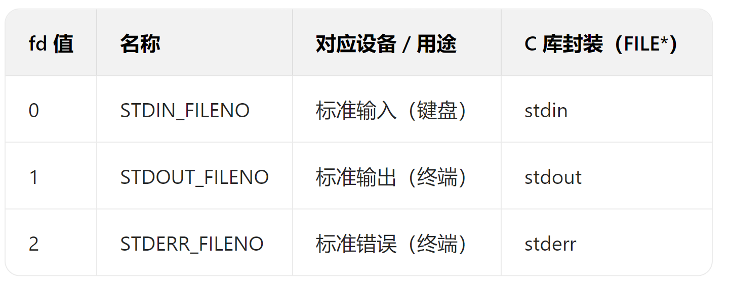 这一过程也说明了操作系统仅关注 "文件描述符 ↔ 内核文件对象" 的底层绑定关系,完全不感知上层的语义约定、程序意图和库函数逻辑。当fd=0标准输入被替换时操作系统是无法感知到的,其只认为fd=0代表的就是标准输入。