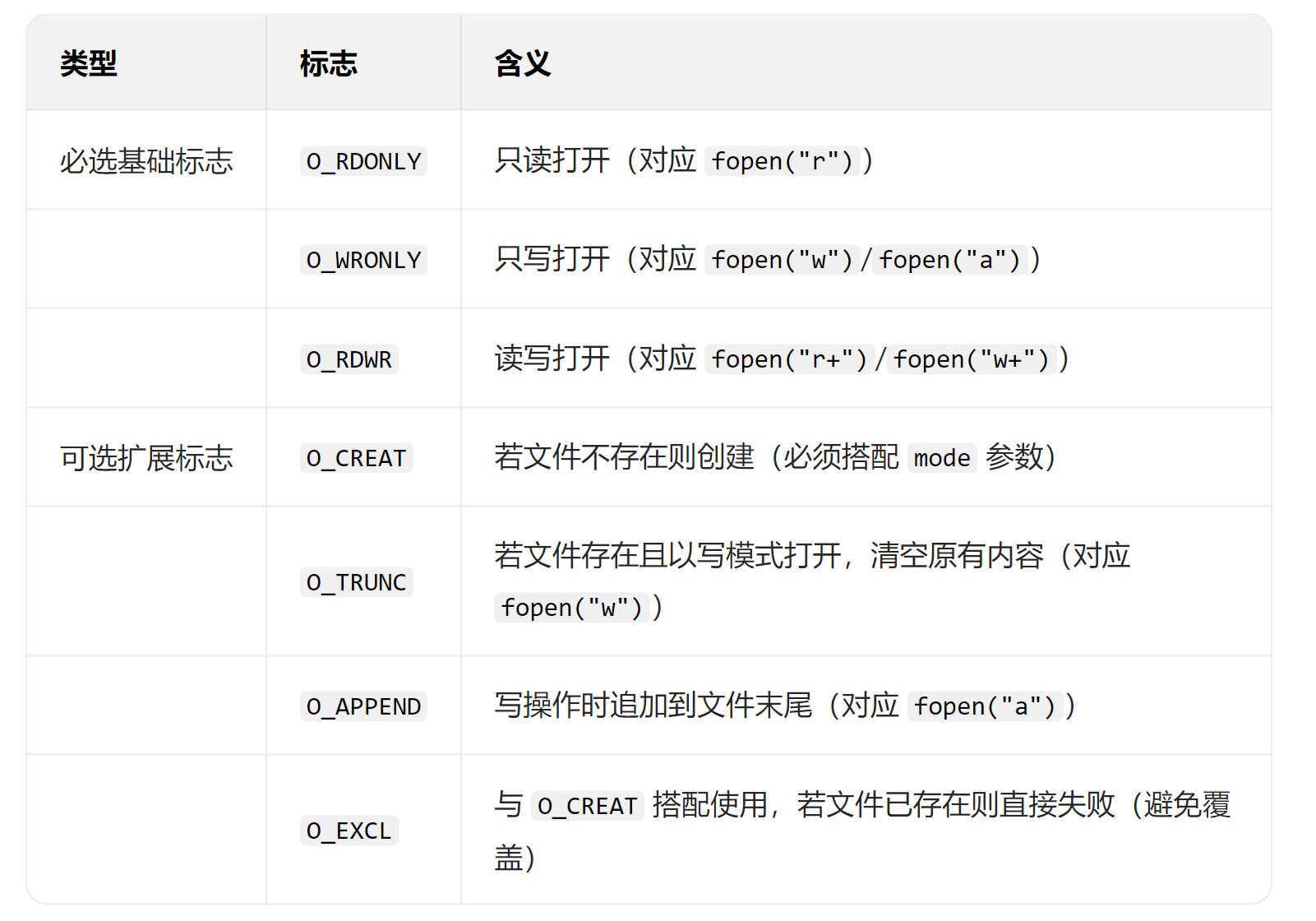 [mode参数--创建文件的权限(仅 O_CREAT 时有效)](#mode参数--创建文件的权限(仅 O_CREAT 时有效))