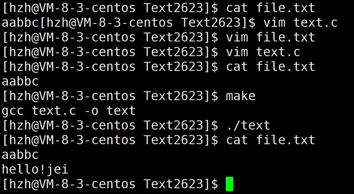 关闭标准输出再打开file.txt文件,当需要向标准输出打印内容时终端屏幕上什么都没有反而发现内容打印到了file.txt文件中,这就是标准输出重定向。