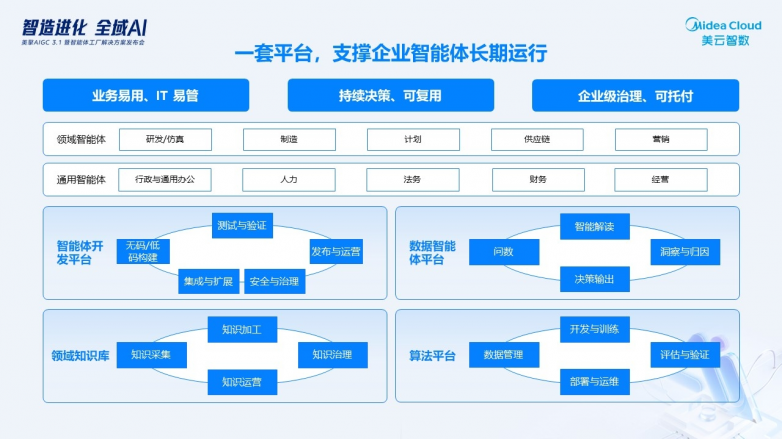 亮点揭晓:美擎AIGC 3.1平台与"智能体工厂"解决方案在会上正式发布,同步展示AI在制造业全链路的业务创新,致力于为行业打造可复制的规模化转型标杆。
