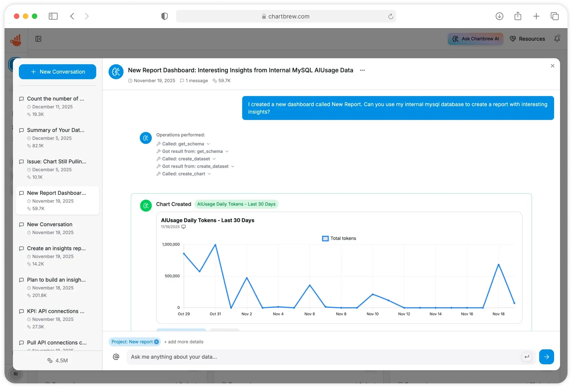 Chartbrew 是一款基于浏览器的开源数据可视化平台,支持连接数据库或者 API 创建交互式仪表板与实时报告。