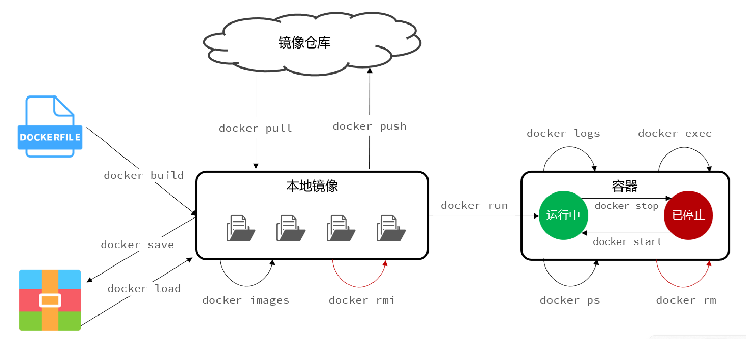 | docker load | 加载本地压缩文件到镜像 | docker load |