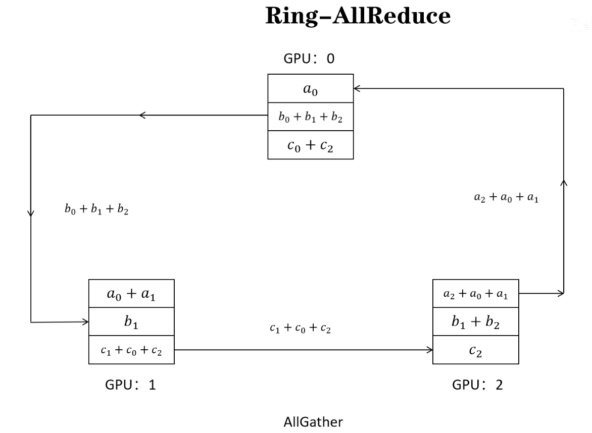 allgather 的意思是,把更新后的值,同步到 各个GPU,最后完成更新。充分利用各个GPU上下行的带宽。