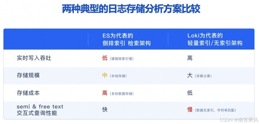 namespace、pod、app、host、job这类维度可控、基数不爆炸的字段 - 内容不建索引:日志行原文不进倒排索引,存储压力和索引构建开销都小很多