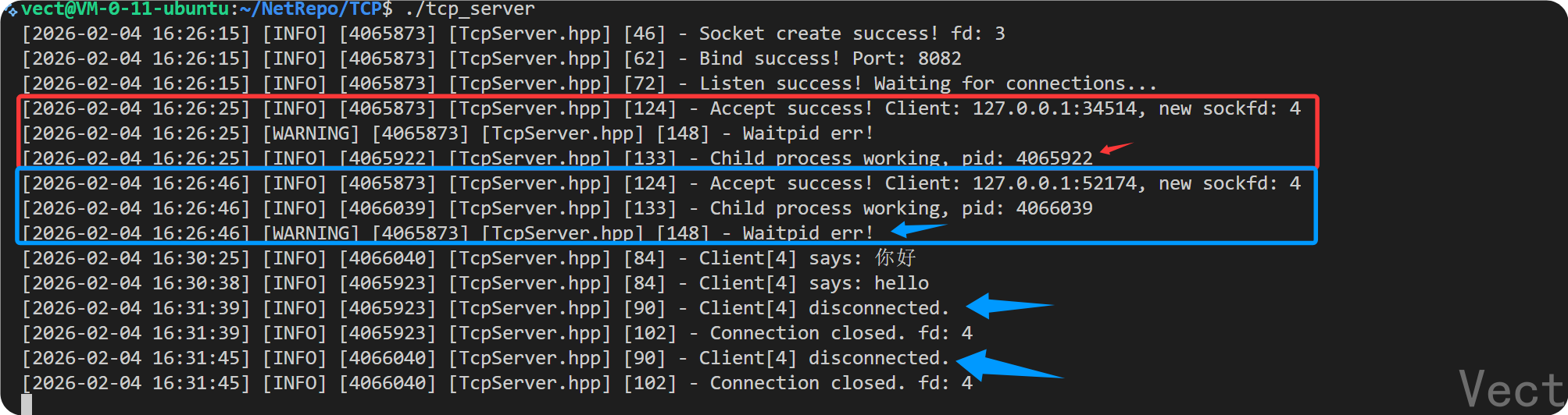 4081151 4081151 tcp_server <-- 主线程 (迎宾员)