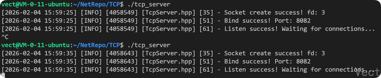 TcpServer(int port = gport, int listenfd = gfd)