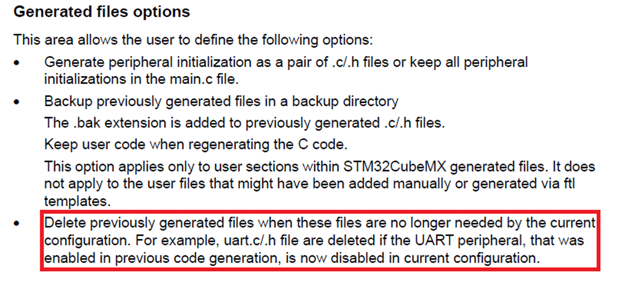 来看一下STM32CubeMX的用户手册,可以看到在代码生成的"生成的文件"选项