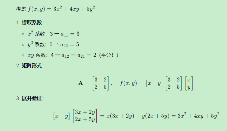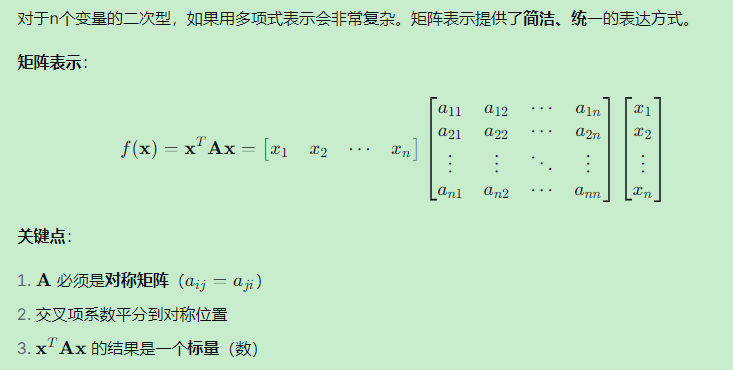 其中 𝐱 是列向量,A 是一个实对称矩阵。