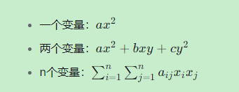 二次型是关于多个变量的二次齐次多项式,没有一次项和常数项。
