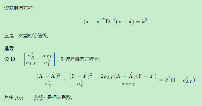 误差椭圆的主轴方向 正是协方差矩阵的特征向量方向,主轴长度与特征值的平方根成正比。
