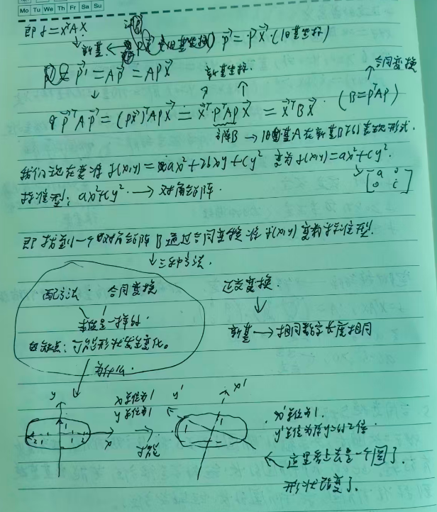 这是最深刻的几何解释。任何二次型 𝐱ᵀA𝐱 都可以通过一个旋转 (或更一般地,正交变换) 𝐱 = P𝐲 化为标准形(仅有平方项,没有交叉项):