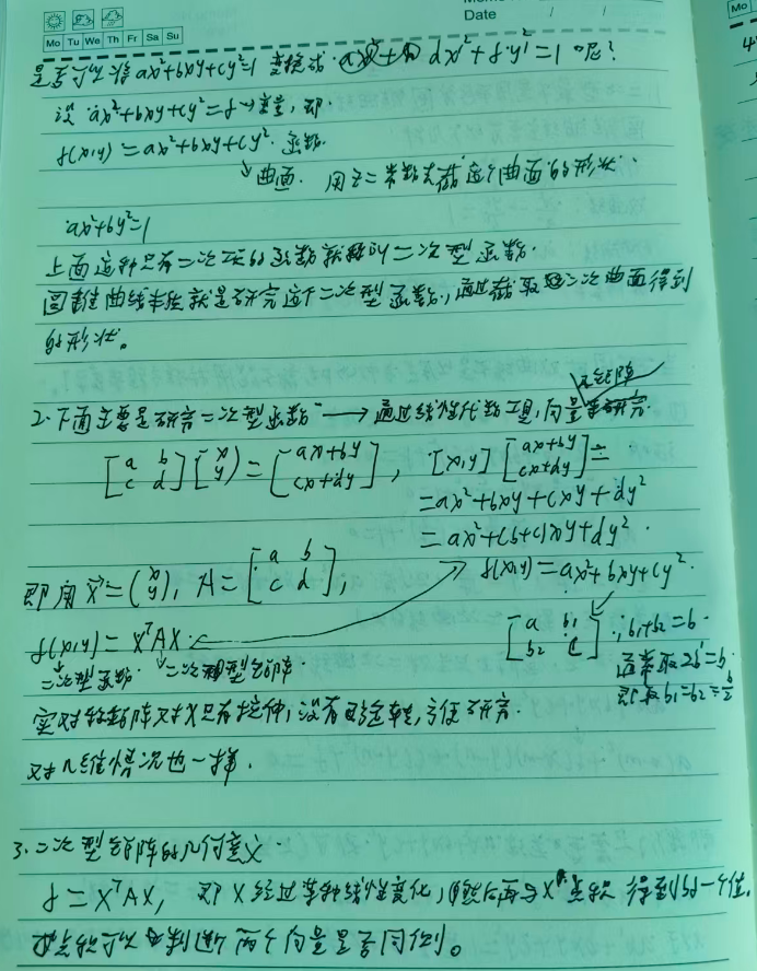 理解了这个几何图像,很多关于二次型的代数性质(如合同变换、惯性定理等)就会变得非常直观。