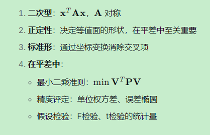 二次型不是孤立的数学概念,而是理解现代测量平差理论的钥匙。掌握了它,就能更深入地理解从最小二乘到卡尔曼滤波的各种算法本质。