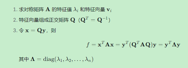 其中 P 的列向量就是 A 的特征向量(主轴方向),λ_i 就是对应的特征值。
