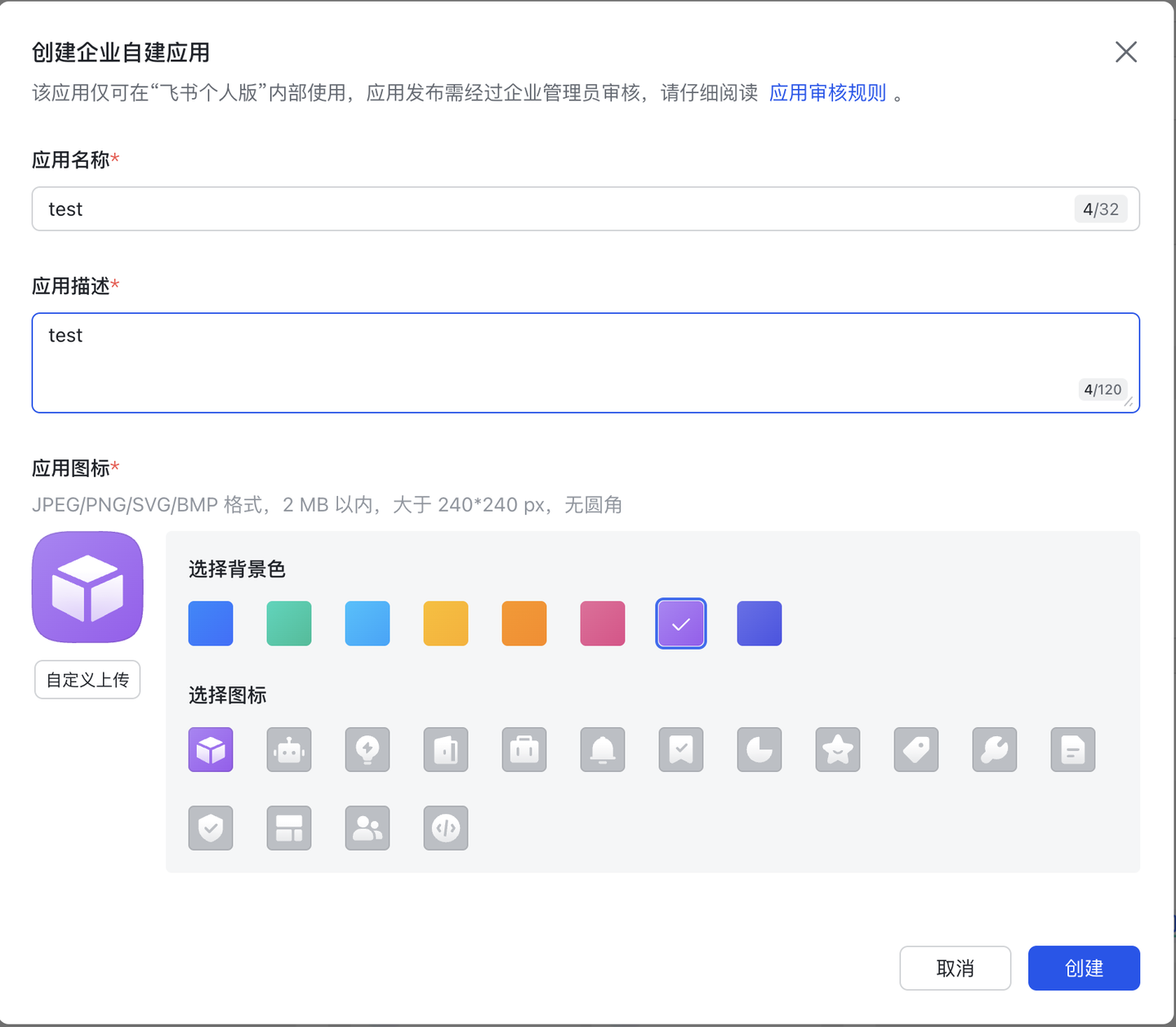 - 应用图标 :可选,建议上传一个有辨识度的图标