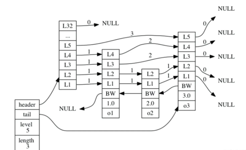 但是Redis并不是标准的跳表,上面的两个限制都不存在;它的最下面一层就是双向链表