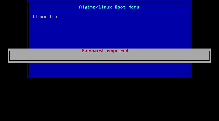 Alpine Linux 中通过修改 /etc/update-extlinux.conf 文件来配置 syslinux 相关参数,实现密码保护并禁止随意修改启动选项。