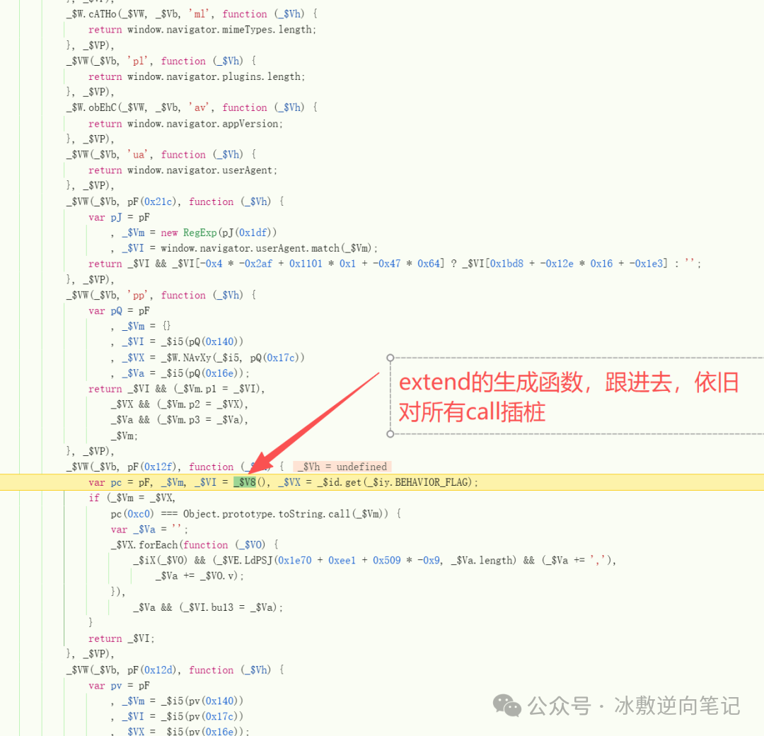 关于extend的生成,因为京东的更新频率也很高,js会经常变化,所以很难用关键词搜索,这一块需要根据clt的日志,先进入环境校验的父函数,然后debug再找到具体的extend生成函数。