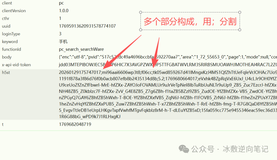 先来看一下h5st的构成。h5st由多个部分组成,且每个部分参数固定。