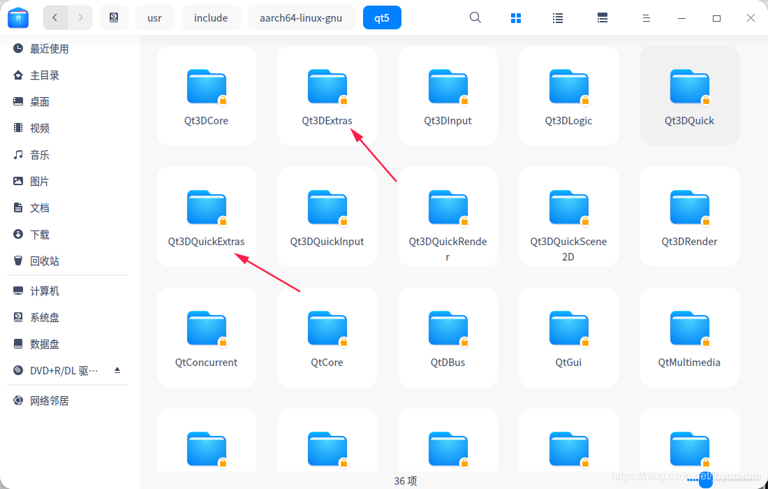 此方法针对arm通过APT包管理器安装qt3d后,其他3d模块都能够找到,仅Qt3DExtras找不到文件的情况。