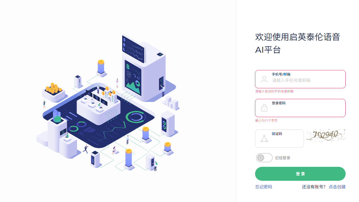 - 访问启英泰伦语音AI平台,个人账号用大陆手机号注册即可。