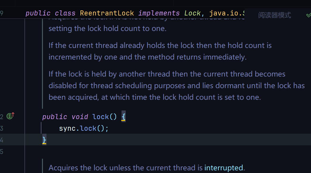 由于ReentrantLock是个可重入锁,判断里有重入的判断