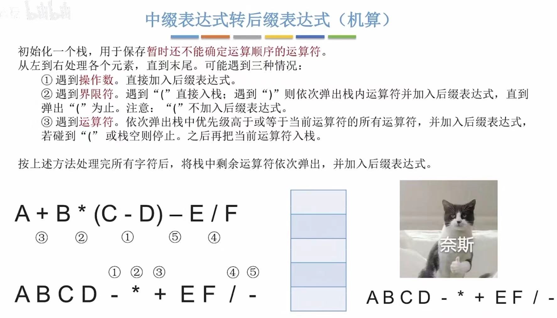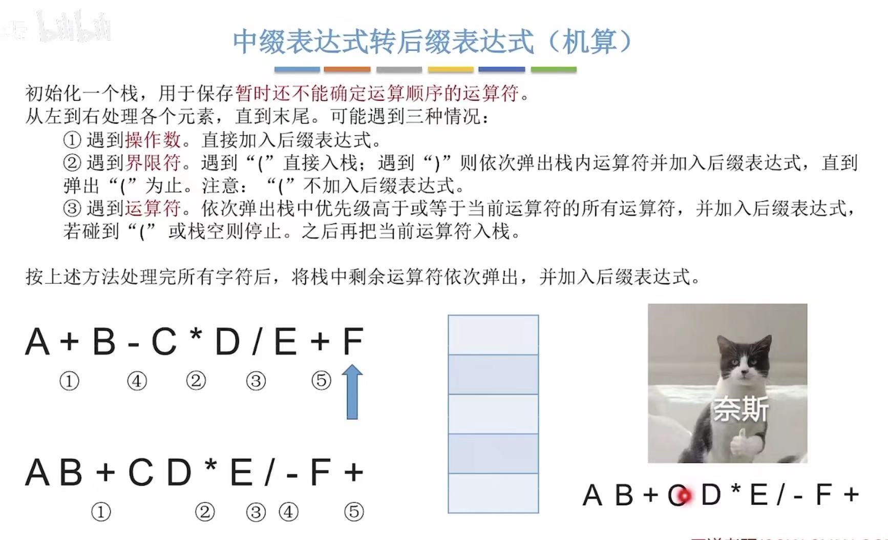 | 14 | (结束) | [-, /] | ABCD - * + E F / - |