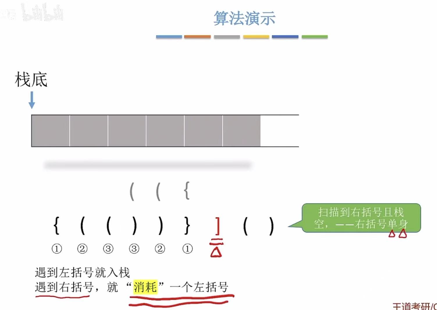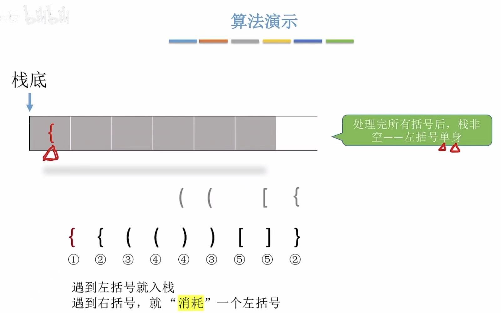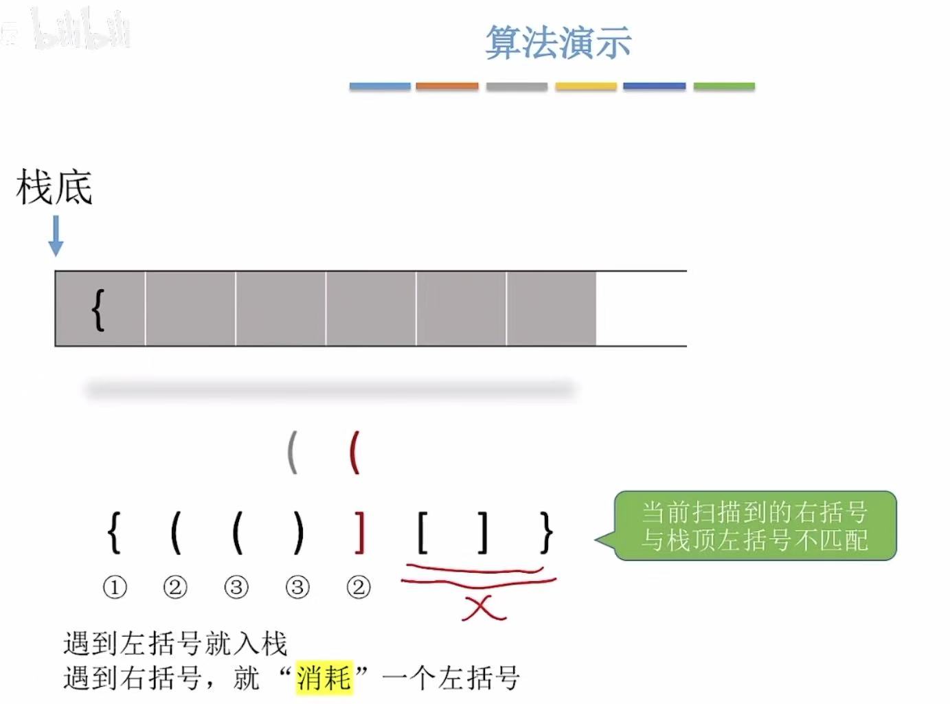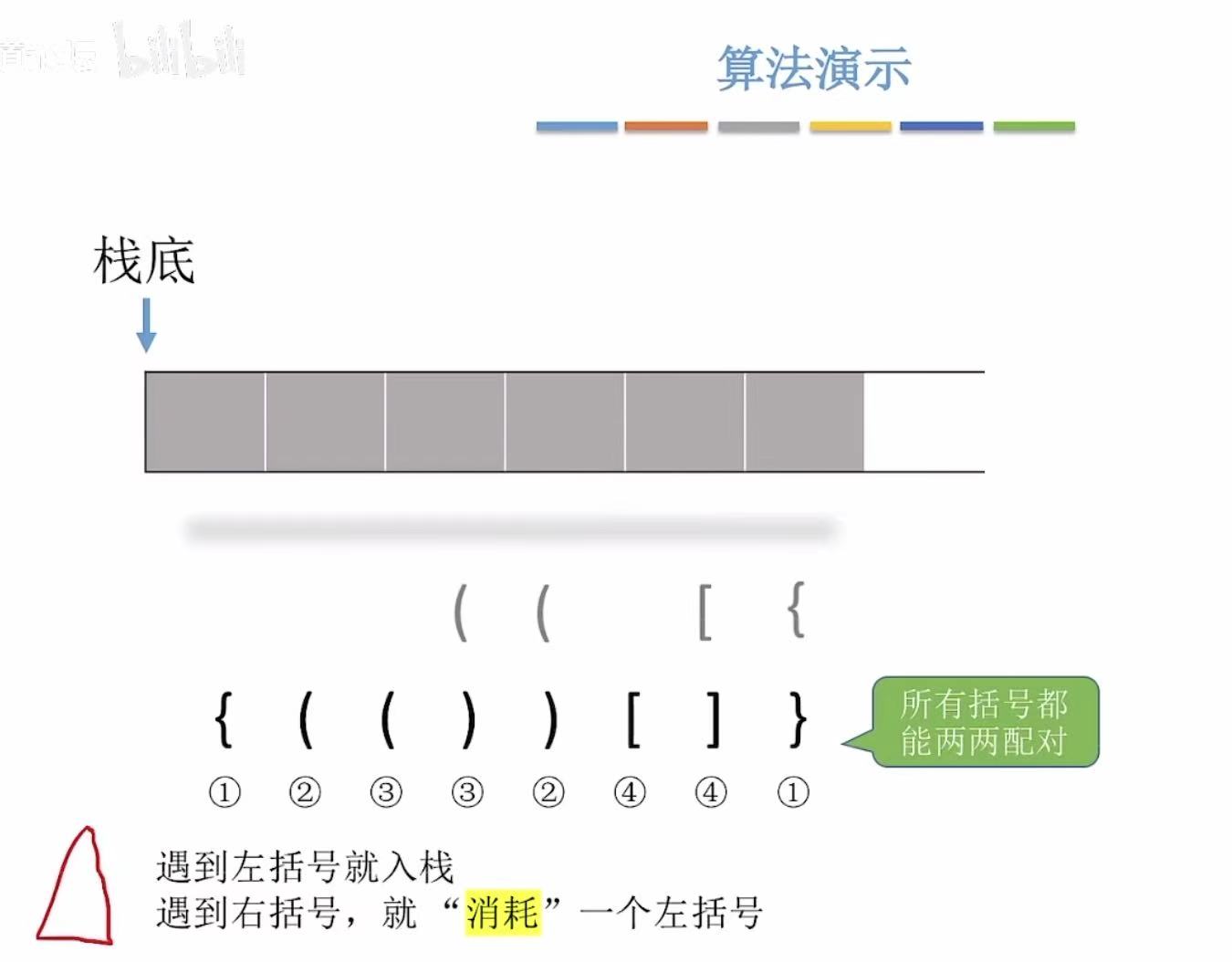 - 右括号-->左括号出栈进行匹配