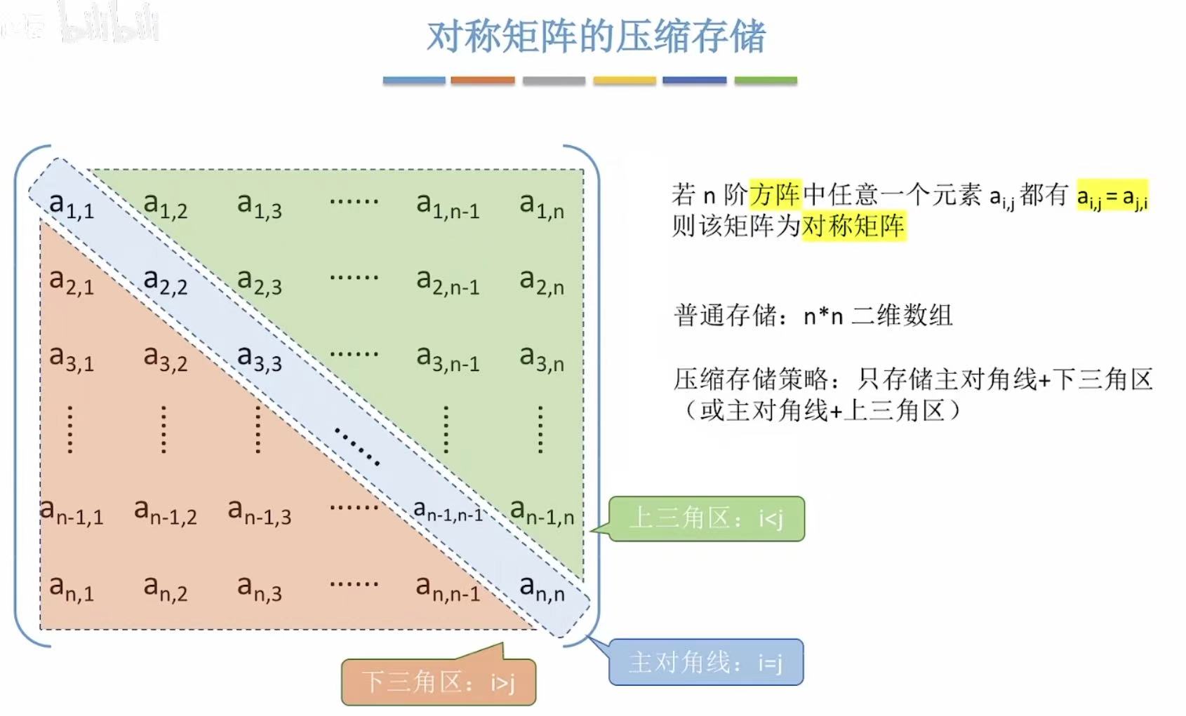 对称 :上下两个三角区的数据是重复的,所以就可以节约一个三角区的空间。