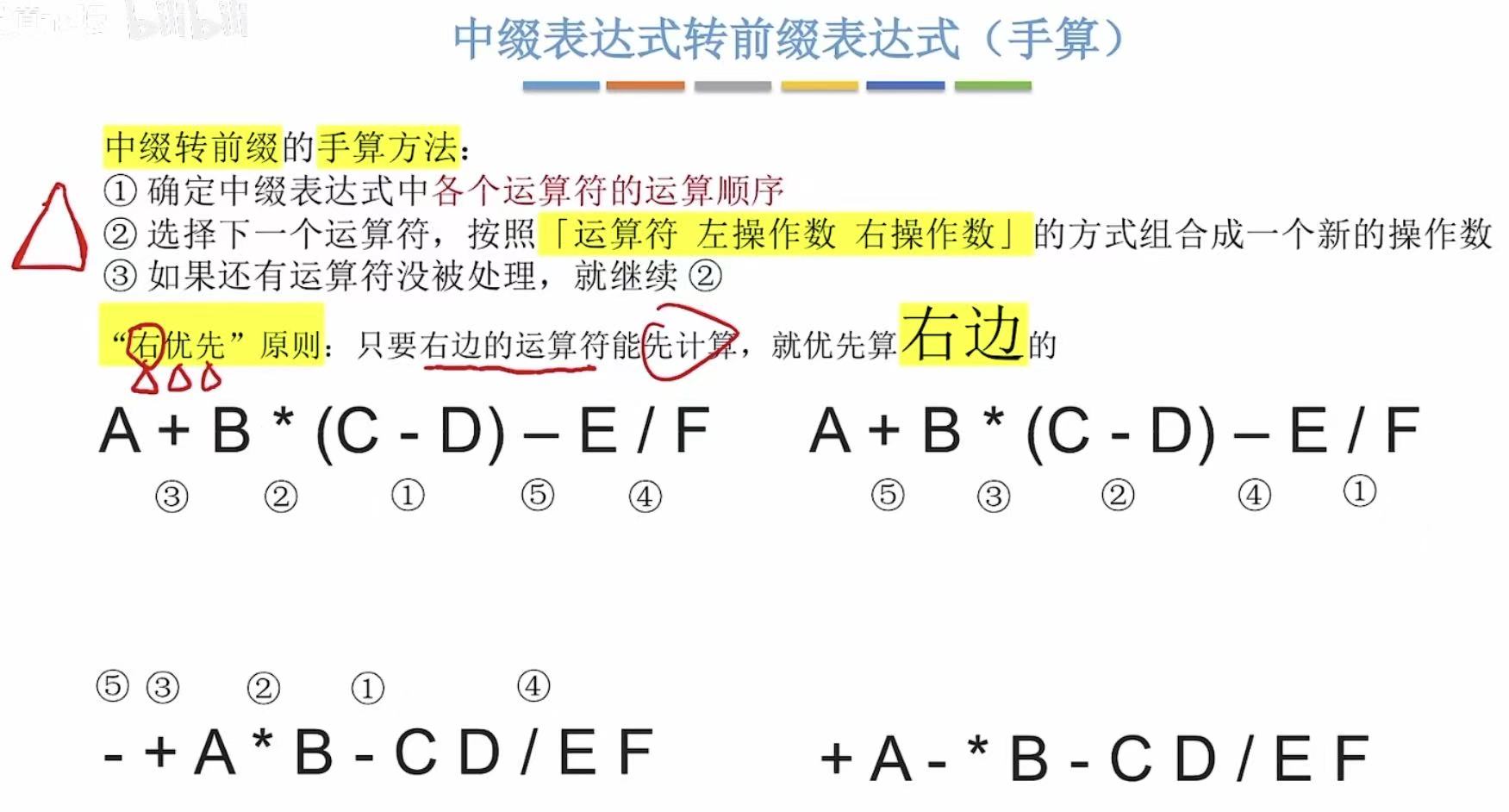 转为前缀表达式就完全反过来了,就是右优先原则。