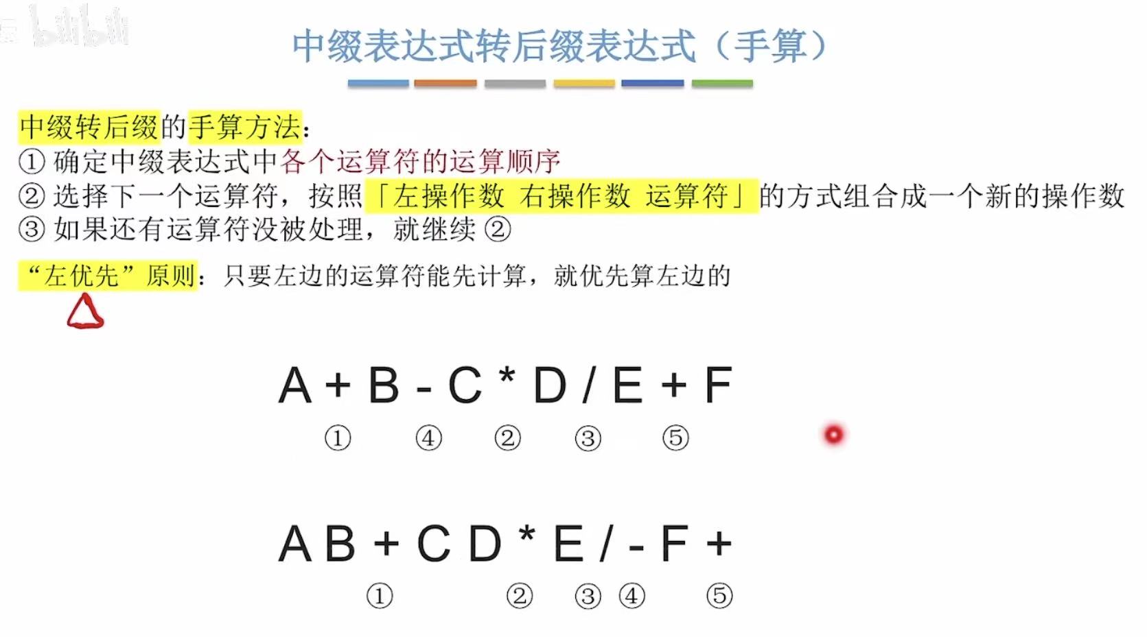 之前提到后缀表达式是左优先原则